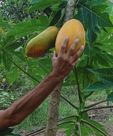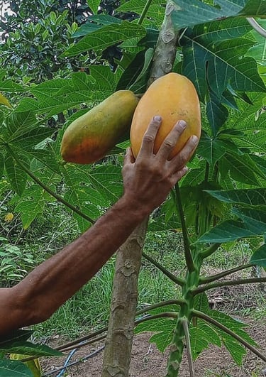 Produzimos diversas frutas e vegetais que alimentam a nós e a fauna a nossa volta